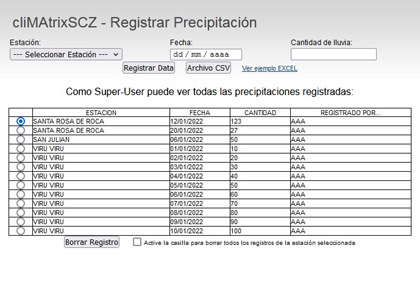 Aprovechando los registros oficiales y registros de personas privadas de precipitación se ha generado un sistema para el registros de los datos y la documentación del cambio clímatico en la región. Por favor, use el login para acceder al sistema!